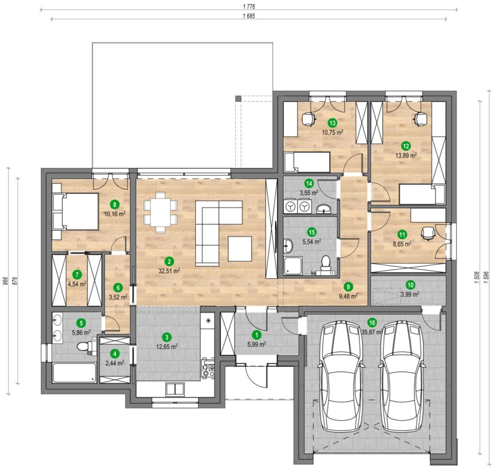 Wyobraź sobie, że budzisz się w swoim wymarzonym domu. Światło porannego słońca delikatnie przenika przez przestronne okna. Każdy detal – od ergonomicznego układu pomieszczeń po wykończenie – sprawia, że czujesz się komfortowo i naprawdę u siebie. Budynek, który daje Ci spokój, bezpieczeństwo i radość z codzienności.