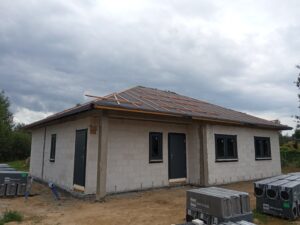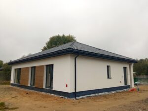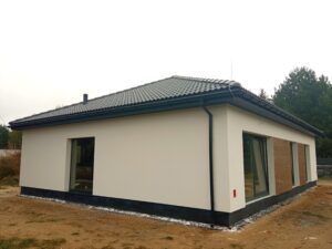 Do ocieplenia dachu użyto piany PUR o grubości 25 cm, natomiast do ocieplenie ścian zewnętrznych użyto styropianu fasadowego o grubości 20 cm. Do wykończenia elewacji budynku użyto tynku silikonowego.