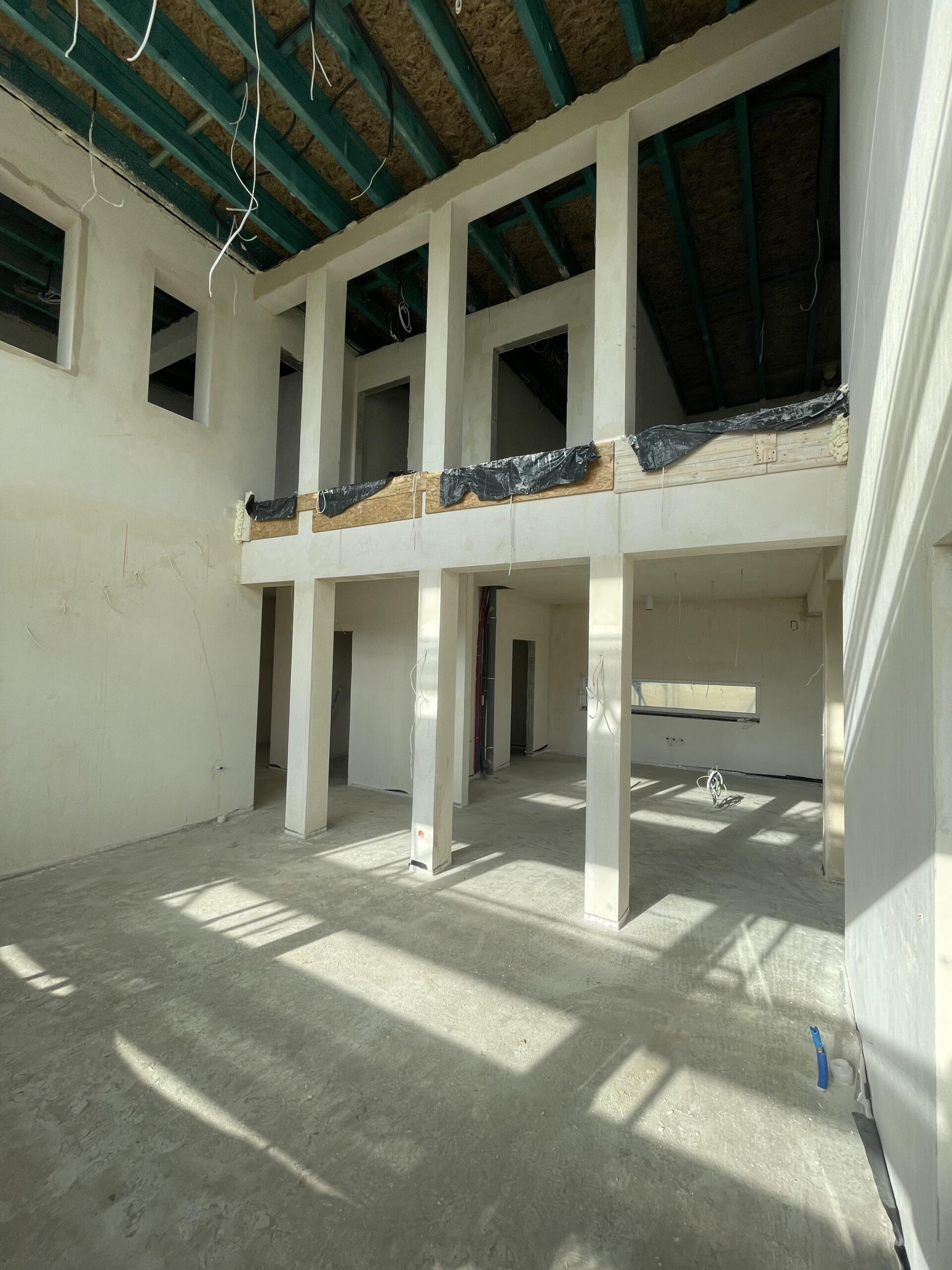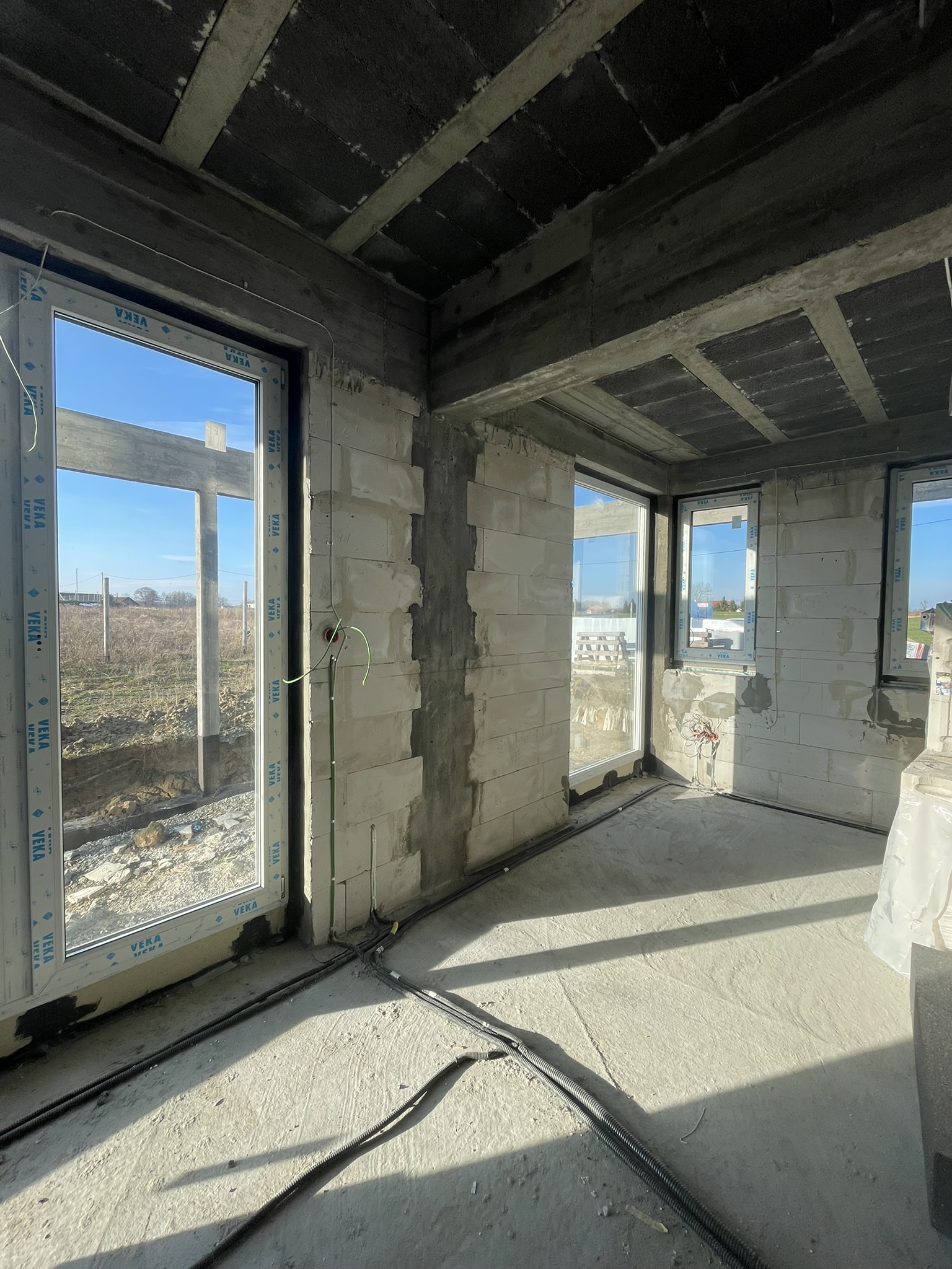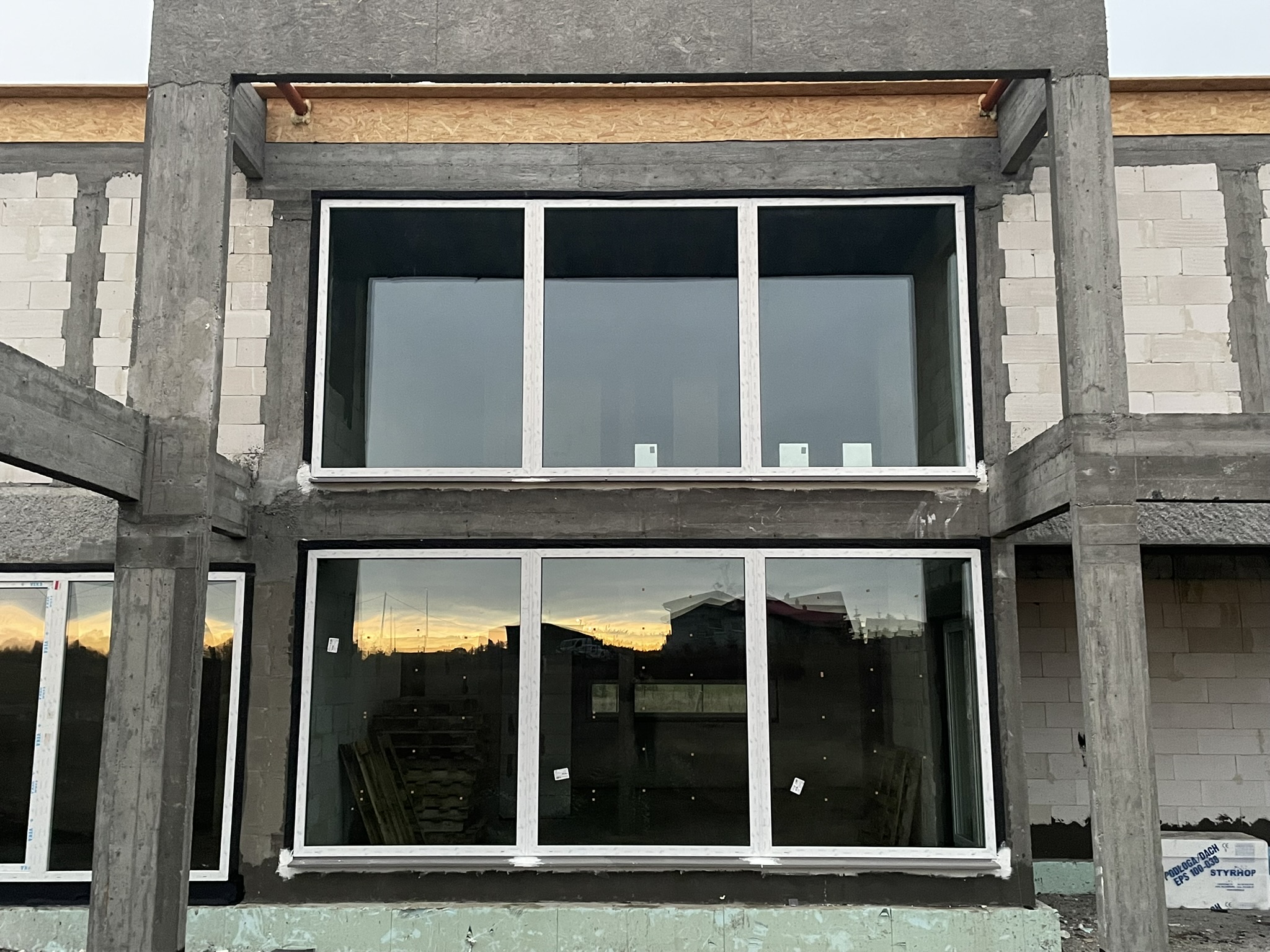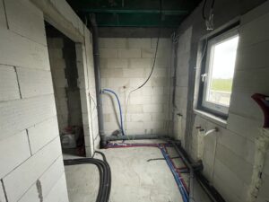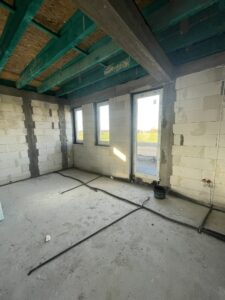 W ramach ciepłego montażu stolarki okiennej zamontowany system energooszczędnych okien z 6-komorowymi profilami o głębokości 82 mm. W budynku wykonano instalację elektryczną, teletechniczną, wod-kan, instalację rekuperacji, oraz pełną instalację powietrznej pompy ciepła wraz z ogrzewaniem podłogowym. Dodatkowo zamontowano peszel pod późniejsze wykonanie paneli fotowoltaicznych.