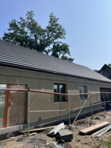 Do ocieplenia dachu użyto piany PUR o grubości 25 cm, natomiast do ocieplenie ścian zewnętrznych użyto styropianu fasadowego o grubości 20 cm. Do wykończenia elewacji budynku użyto tynku silikonowego.