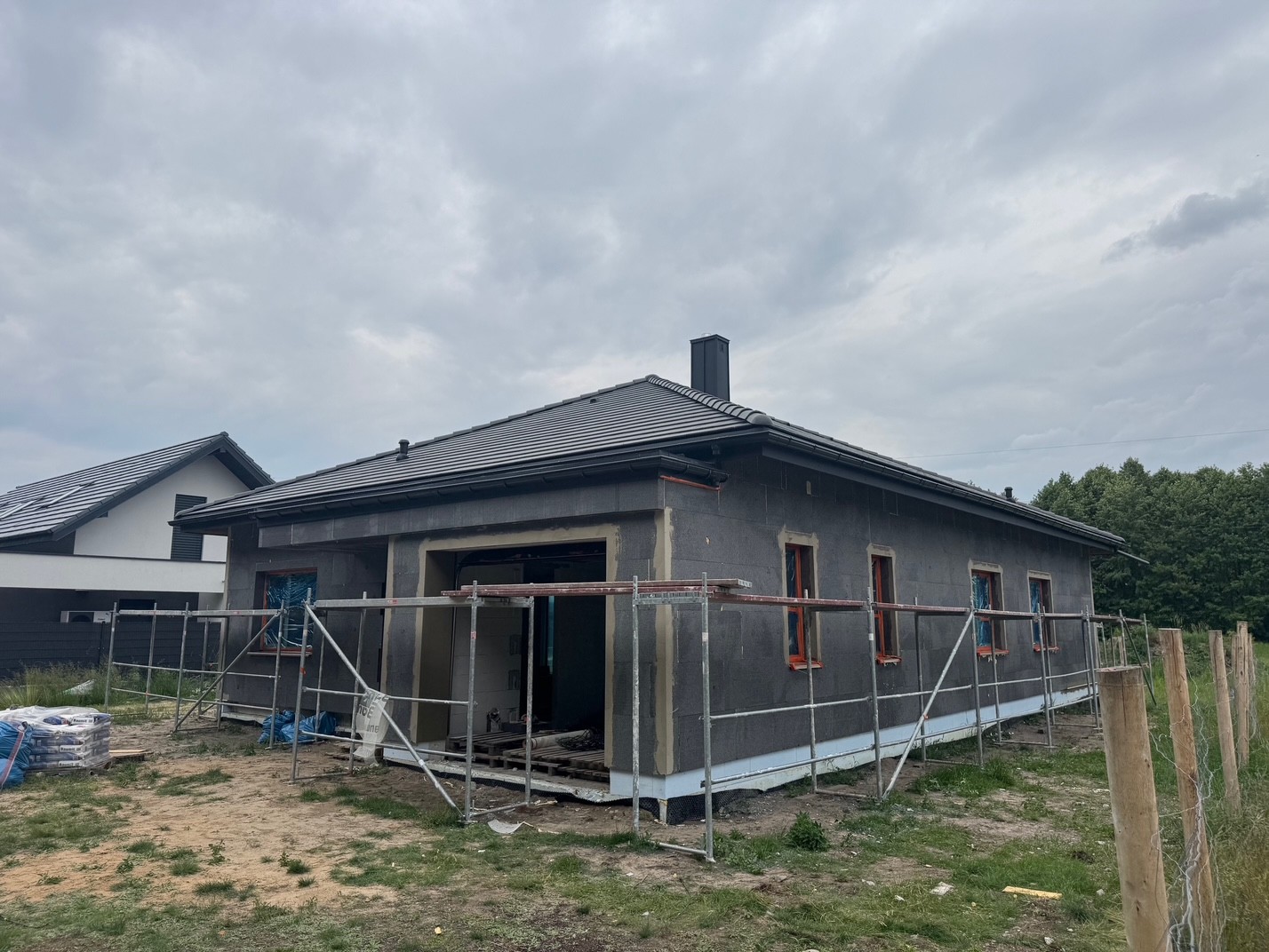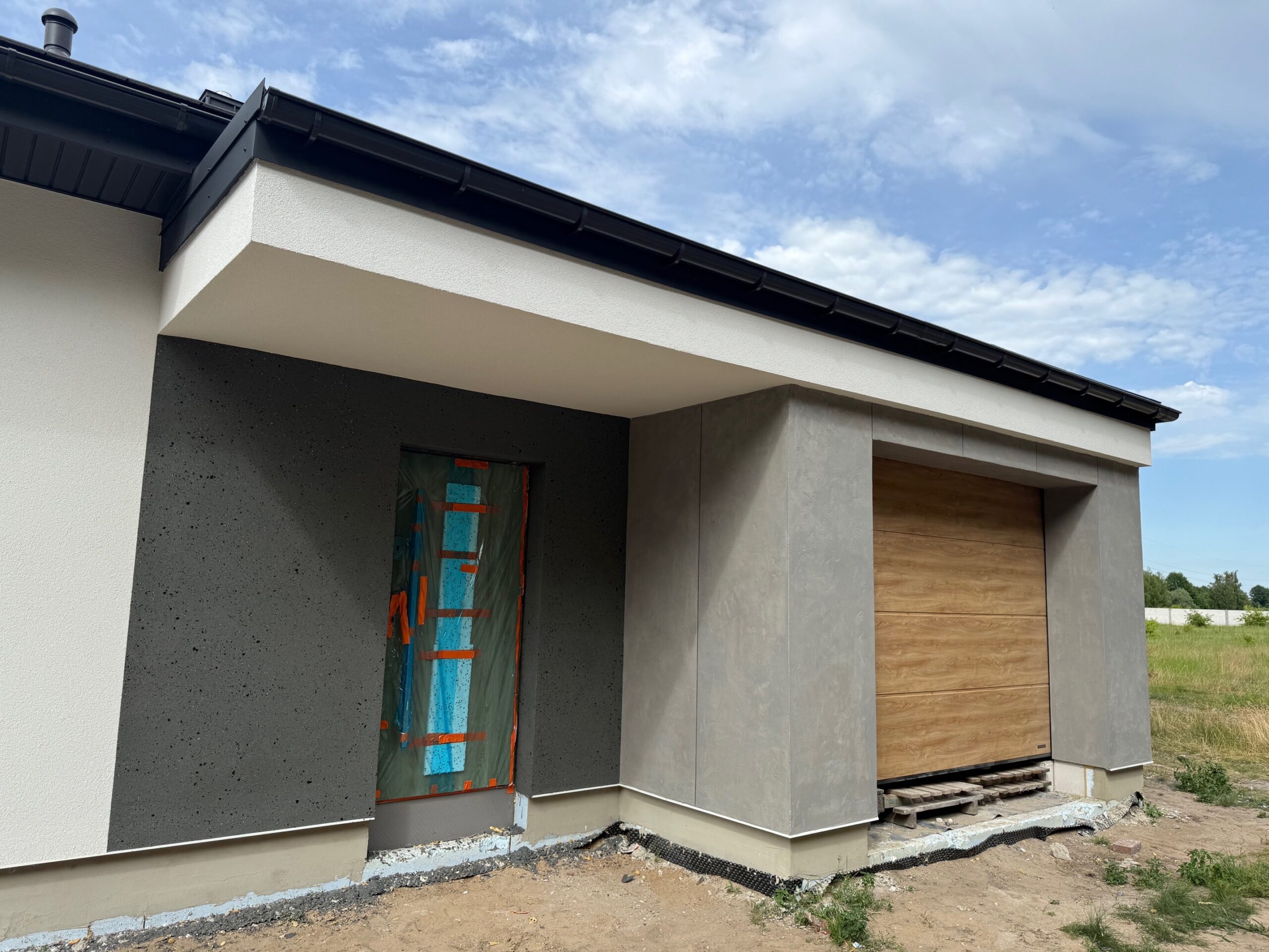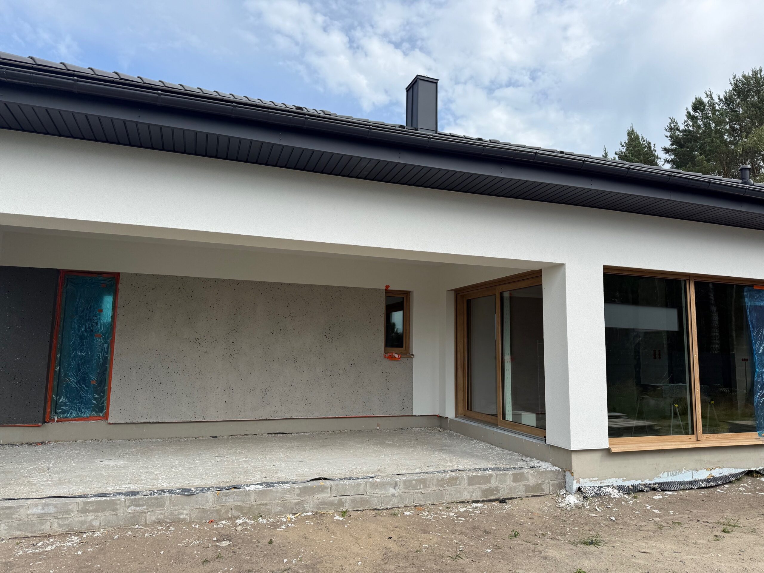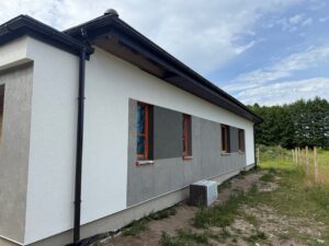 Do ocieplenia dachu użyto piany PUR o grubości 25 cm, natomiast do ocieplenie ścian zewnętrznych użyto styropianu fasadowego o grubości 20 cm. Do wykończenia elewacji budynku użyto tynku silikonowego.