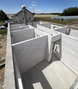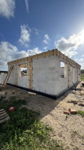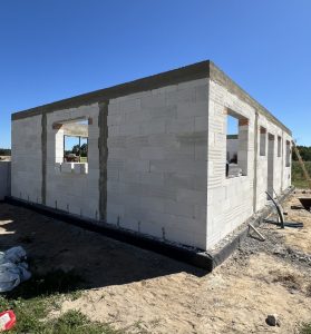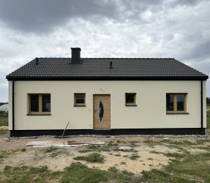 Ratoszyn– wieś sołecka w Polsce położona w województwie mazowieckim, w powiecie białobrzeskim. Tu właśnie usytuowany został dom o powierzchni użytkowej 78 m2 wzniesiony na fundamentach tradycyjnych, czyli zbrojonych ławach i murach fundamentowych. Ściany nośne oraz działowe wykonane zostały z betonu komórkowego o grubości odpowiednio 24 cm i 12cm. Więźba dachowa została wykonana z prefabrykowanych wiązarów, a dach budynku pokryto dachówką betonową falistą w kolorze grafitowym.