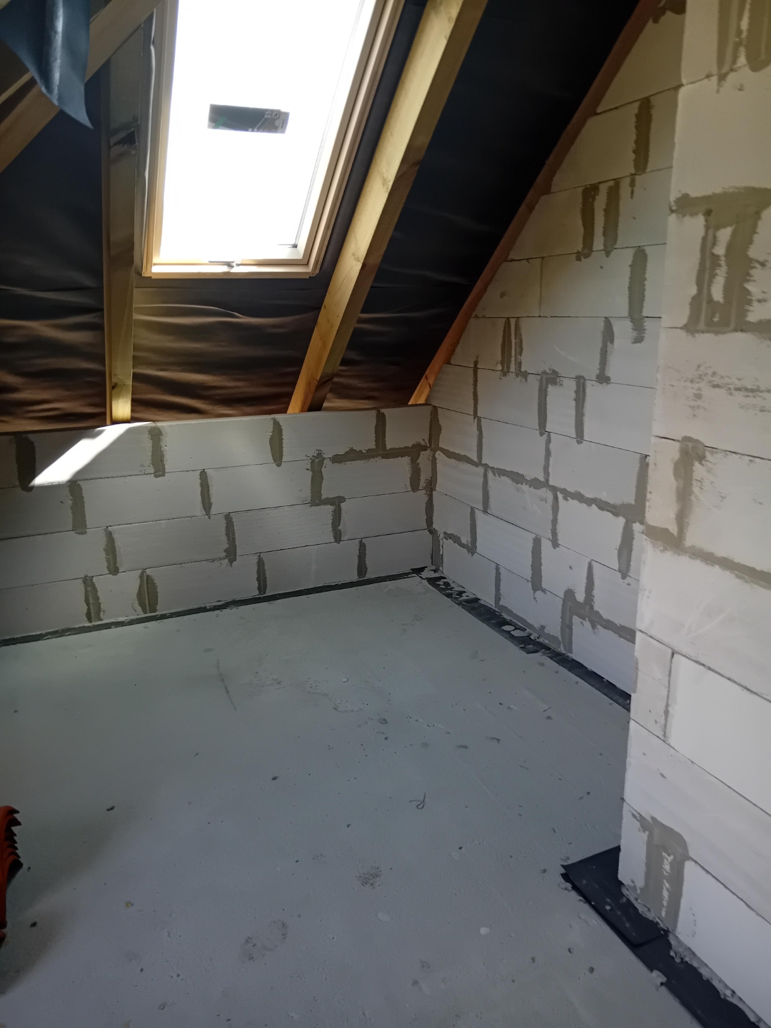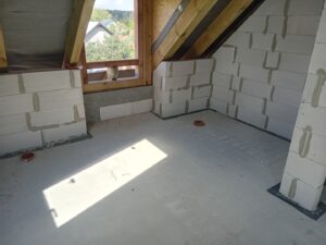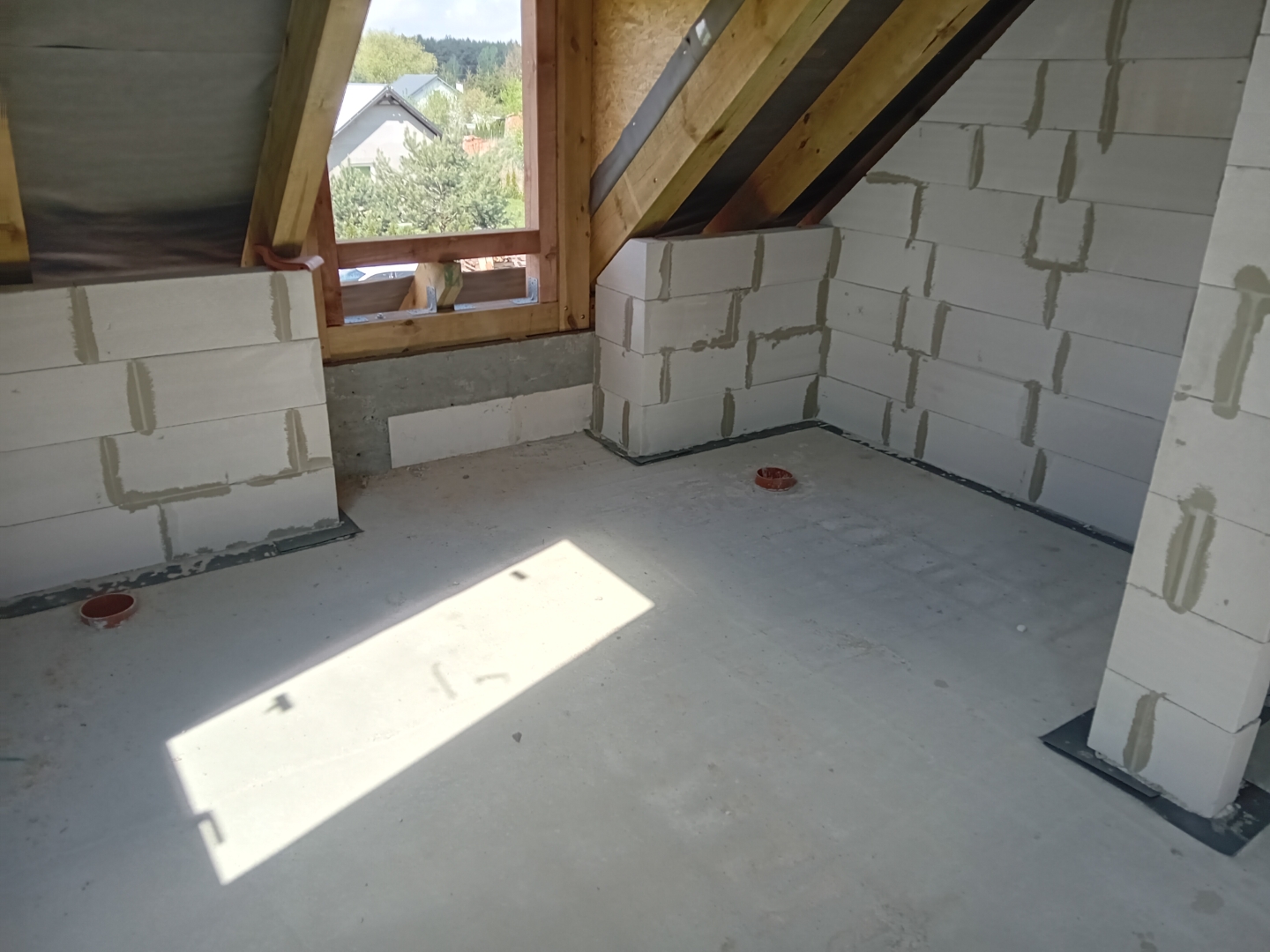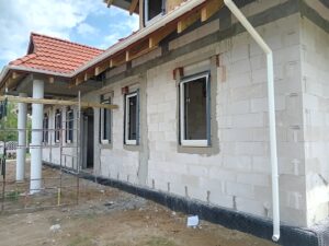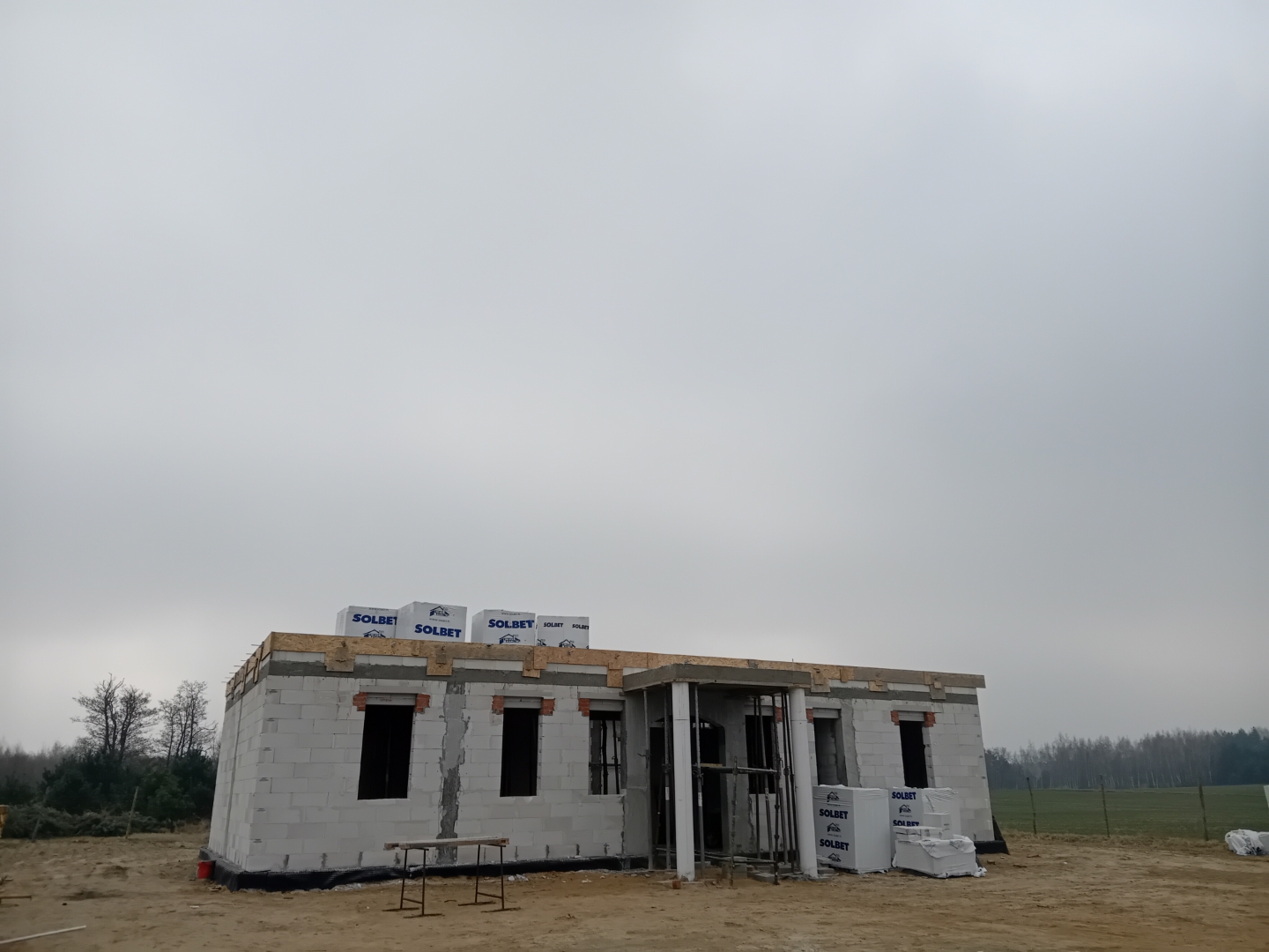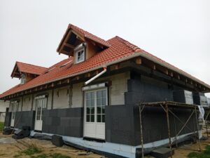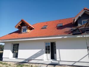 Ocieplenie dachu budynku wykonano pianą PUR o grubości 25 cm, a ścian zewnętrznych – styropianem fasadowym o grubości 20 cm. Do wykończenia elewacji budynku użyto tynku silikonowego.