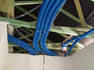 Dom wyposażono w stolarkę okienną  z 6.komorowymi profilami okiennymi, przy montażu ciepłym i zastosowaniu rolet radiowych. W budynku wykonano instalację elektryczną, teletechniczną, wodno-kanalizacyjną, instalację rekuperacji, oraz pełną instalację ogrzewania elektrycznego.