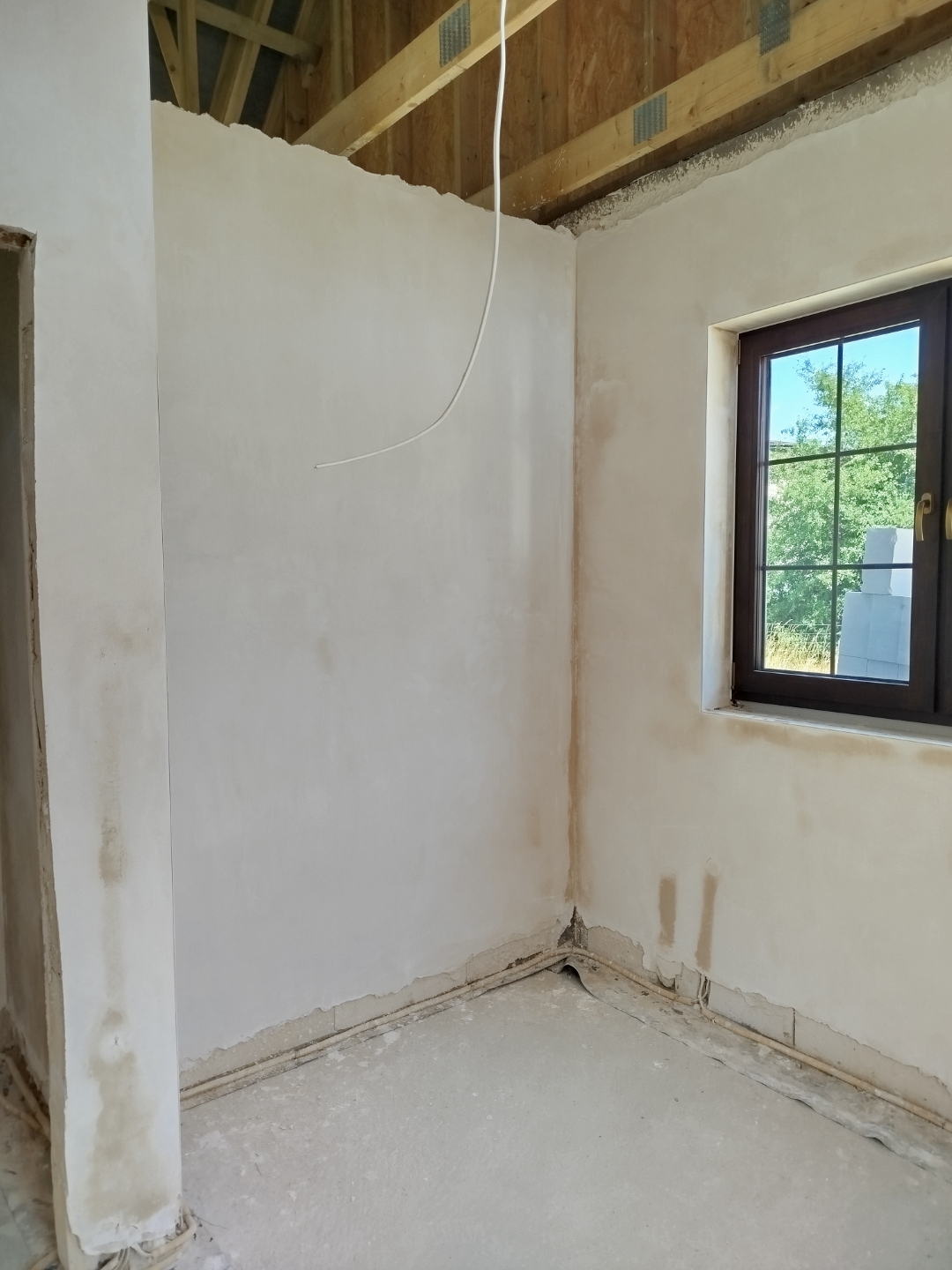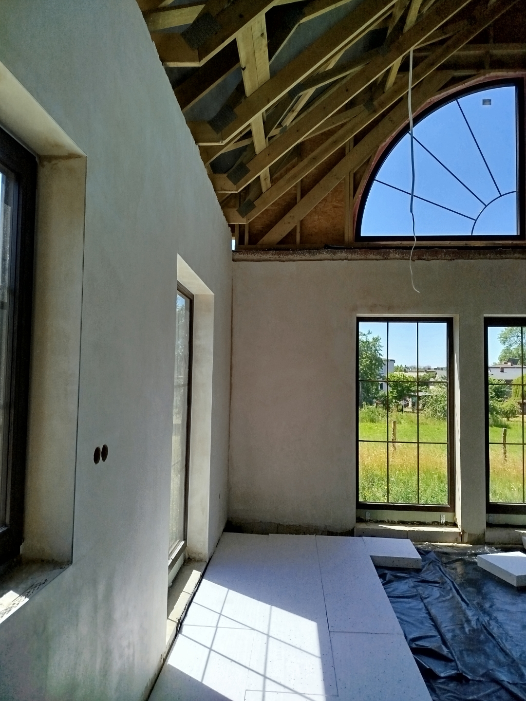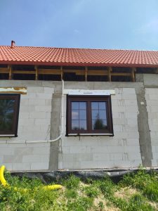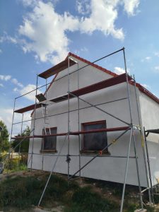 Ocieplenie dachu budynku wykonano wełną o grubości 25 cm, a ścian zewnętrznych – styropianem fasadowym o grubości 20 cm. Do wykończenia elewacji budynku użyto tynku silikonowego.