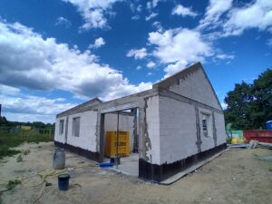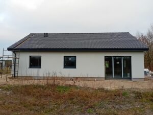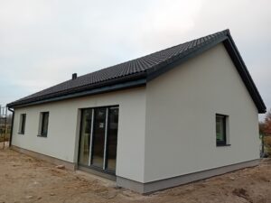 Tatynia – wieś w Polsce położona w województwie zachodniopomorskim, w powiecie polickim. To właśnie tutaj usytuowany został dom o powierzchni użytkowej 98 m2 wzniesiony na fundamentach tradycyjnych, czyli zbrojonych ławach i ocieplonych murach fundamentowych. Zostało również wykonane ocieplenie murów fundamentowych za pomocą styropianu Aqua. Ściany nośne oraz działowe wykonane zostały z betonu komórkowego, natomiast więźba dachowa powstała z prefabrykowanych wiązarów. Dach budynku pokryto dachówką betonową falistą w kolorze grafitowym.