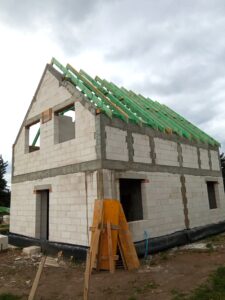 Do ocieplenia dachu użyto piany PUR o grubości 25 cm, natomiast do ocieplenie ścian zewnętrznych użyto styropianu fasadowego o grubości 20 cm. Do wykończenia elewacji budynku użyto tynku silikonowego.