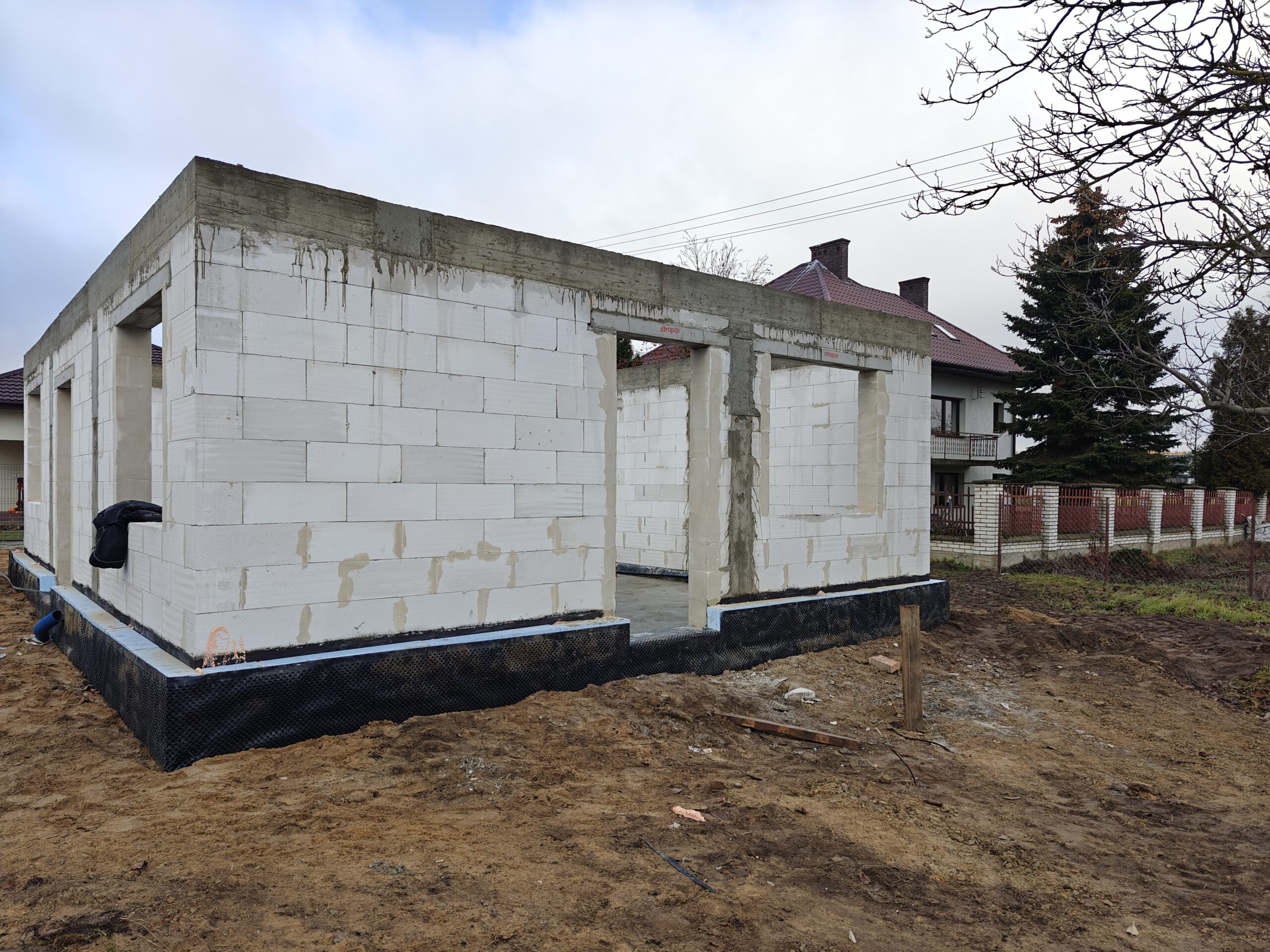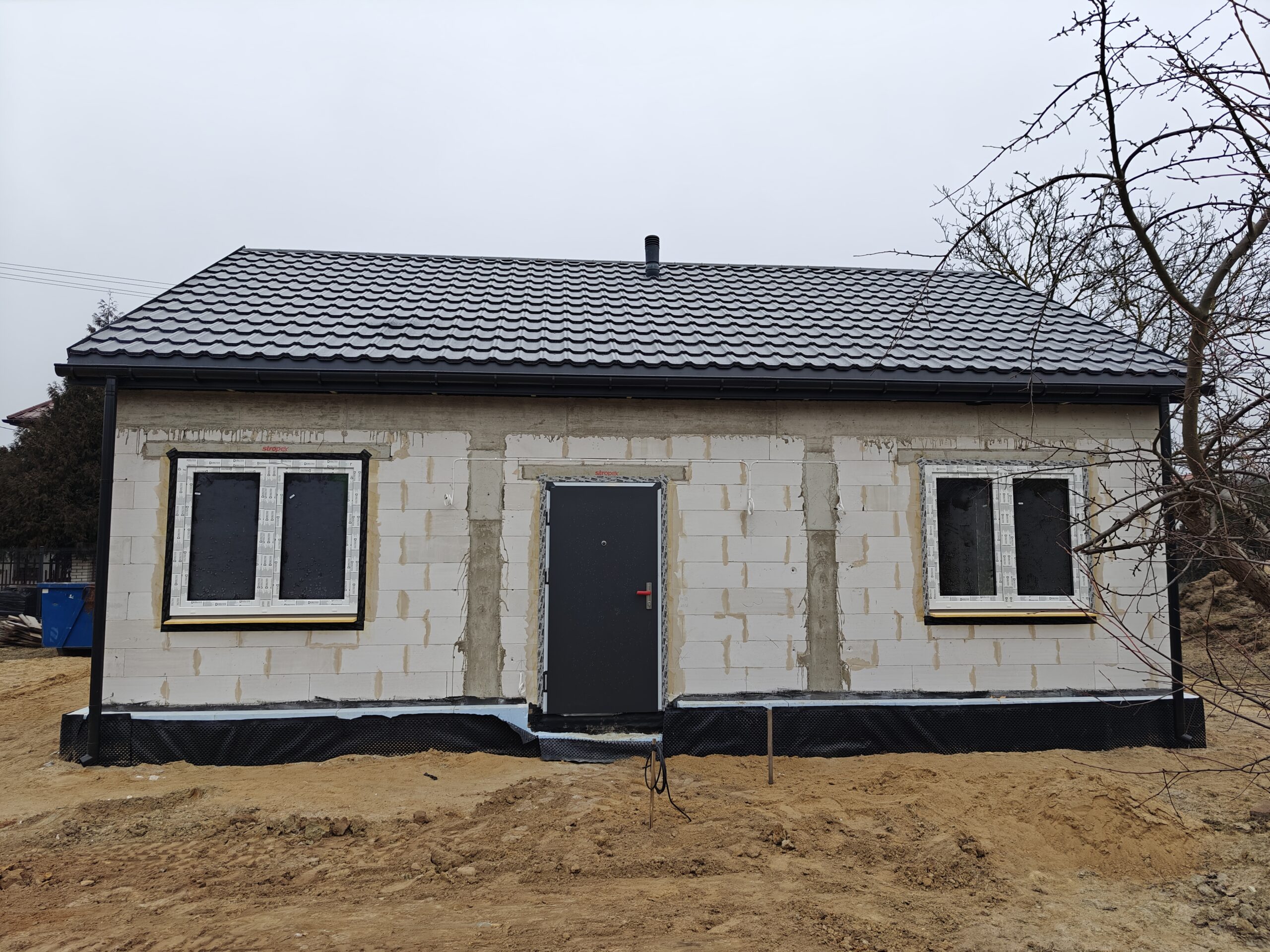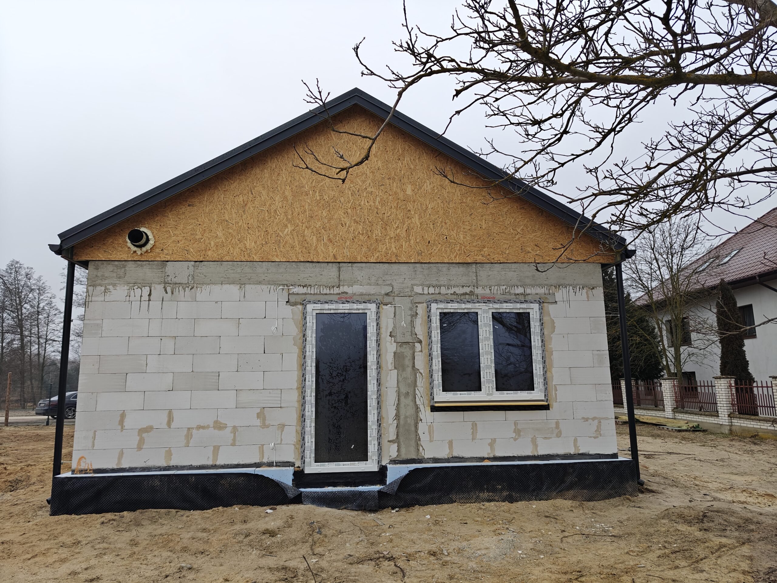 Do ocieplenia dachu użyto piany PUR o grubości 25 cm, natomiast do ocieplenie ścian zewnętrznych użyto styropianu fasadowego o grubości 20 cm. Do wykończenia elewacji budynku użyto tynku silikonowego.
