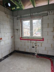 W ramach ciepłego montażu stolarki okiennej zamontowany system trzyszybowych, energooszczędnych okien z 6-komorowymi profilami o głębokości 82 mm. W budynku wykonano instalację elektryczną, teletechniczną, wod-kan , instalację ogrzewania elektrycznego oraz instalację rekuperacji. Dodatkowo zamontowano peszel pod późniejsze wykonanie paneli fotowoltaicznych.
